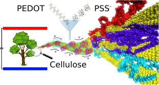 In this project we perform multi-scale theoretical modelling of wood-based materials and devices ranging from the Molecular Dynamics and ab initio simulations on the atomistic level to the drift-diffusion device simulation on the system level to answer the fundamental questions concerning material structure, morphology, polymerization, porosity, ion diffusion, role of water, solvents and many others,
